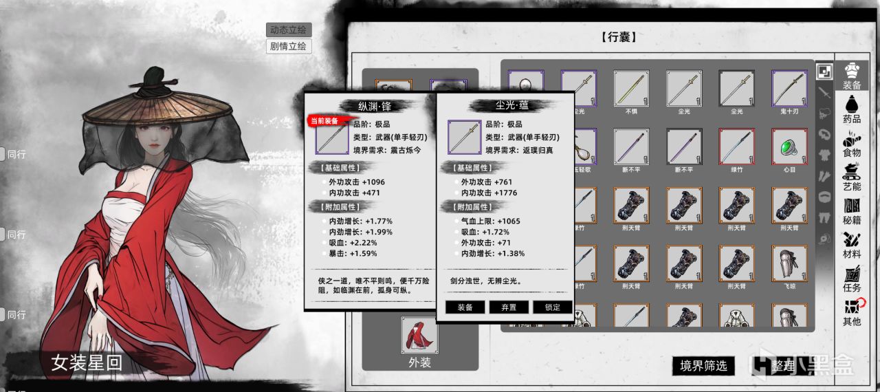 (2)此外裝備系統基本就是每個境界有一套內容,是完全上位替代之前的兵器,兵器的等級只是決定詞綴的數量,這種“棒打小龍蝦”的設計就不那麼武俠了,比如令狐沖如果拿到倚天劍,沒道理“突破境界”之後還要換武器。