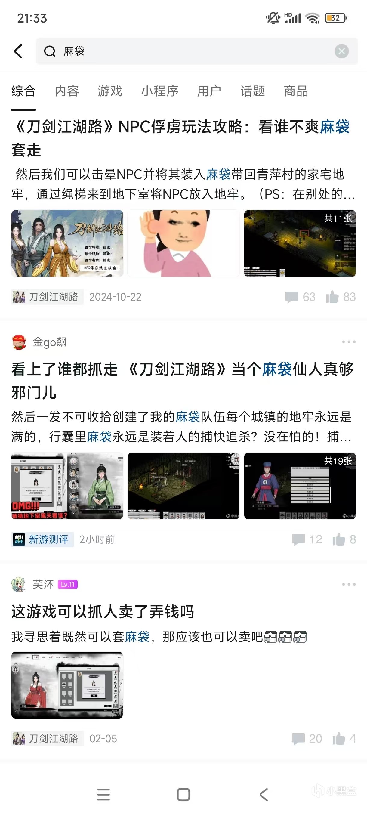 甚至如果你在社區搜索“麻袋”,大部分結果都是《刀劍江湖路》的受害NPC!