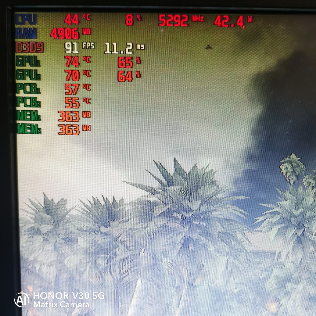 作爲一個當年爆火的fps遊戲,正好對應上使用這張顯卡的玩家會去玩的遊戲,可以看到使用兩顆核心輕鬆在全高畫質下跑滿了90幀不愧爲卡皇(沒有使用截圖真的很抱歉,這遊戲我怎麼截圖都是黑屏,也沒有視頻採集卡,只能屏攝了請大家諒解)