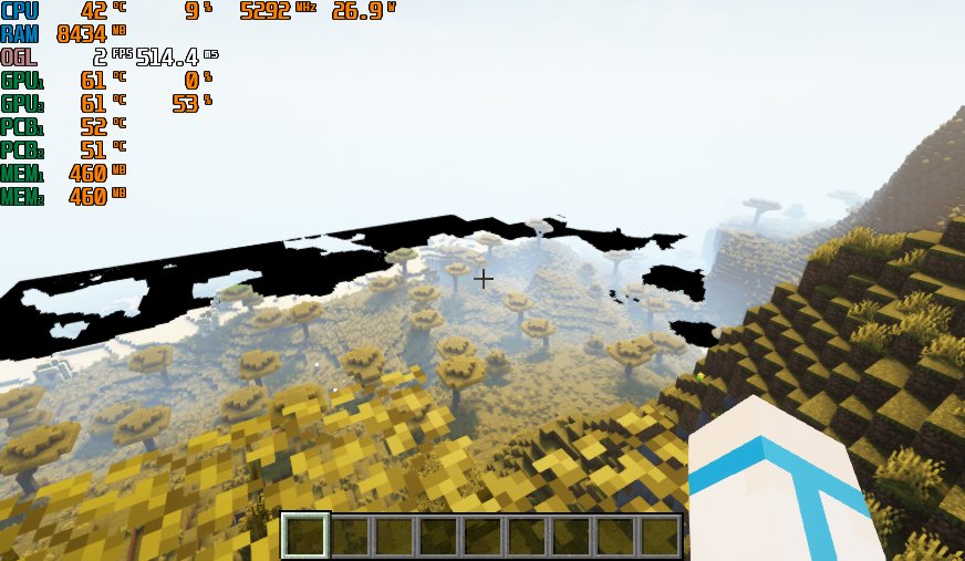 幀數十分甚至九分的能玩,不時達到電競幀數(最高5幀)而且還會出現一些渲染錯誤(如水體)