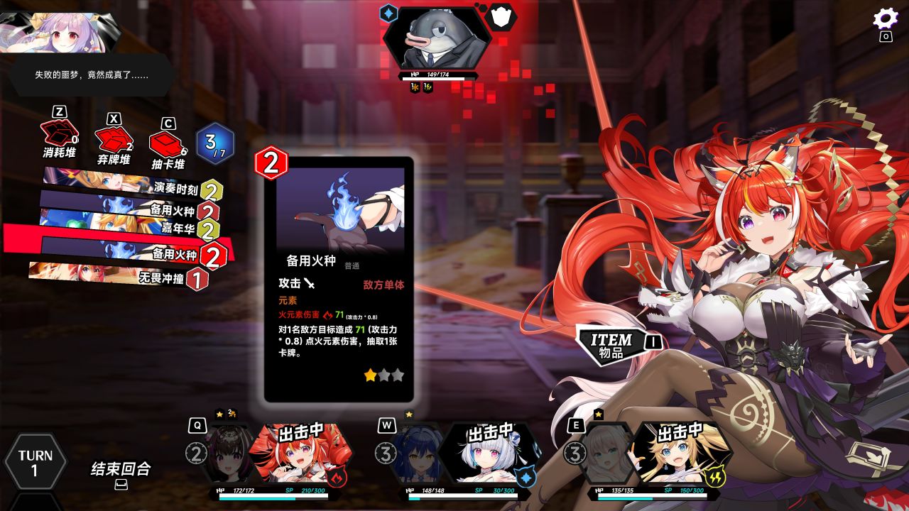 实话说,本作的卡牌战斗只能作为添头,作为核心玩法还是差了点意思。好在卡牌战斗足够简单,不需要费心配置卡组就能快速结束战斗,不过也相应地少了一些乐趣。关于卡牌玩法这部分还是个长期工作,目前只能算无功无过,后续如果进行大幅度修改的话也许会变得更好玩了也说不定。