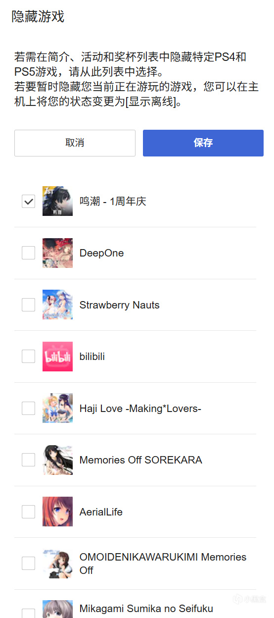 這樣,不想展示的遊戲就不會刷新在小黑盒綁定頁,但是ps app可以正常顯示。(意思是別人看不到你的遊戲,但是你自己能看見)