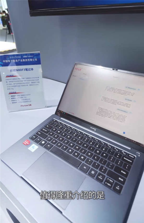 在日前举办的第八届数字中国建设峰会上,飞腾自研的首款笔记本电脑CPU——飞腾腾锐D3000M首次亮相。