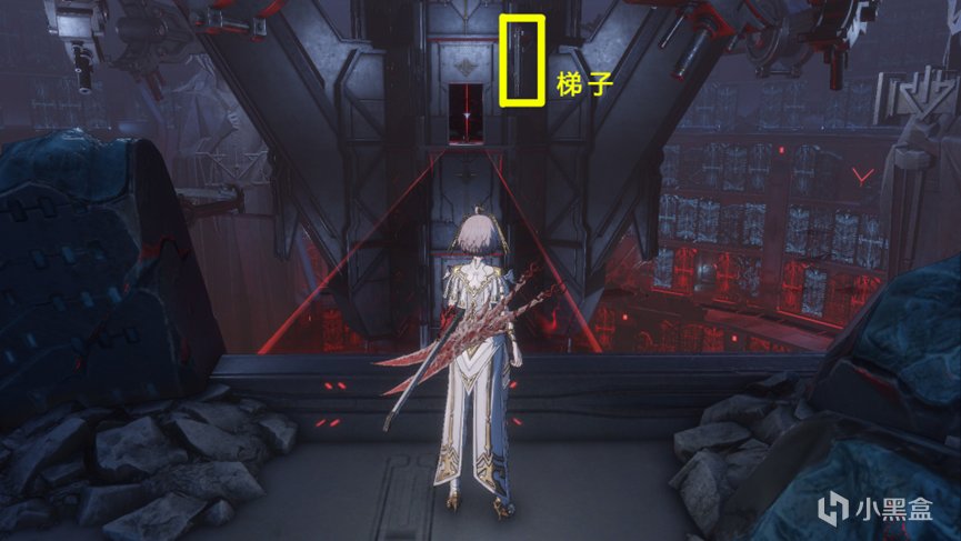 順便一提,玩家在監視塔內會發現監視塔中央有一塊三角形區域被紅色透明平臺擋住,同時不斷有平臺上升,就像電梯一樣(見圖12),而在監視塔外側也可以看到一個需要從上面放下來的梯子(見圖10)。那麼,說明要想前往監視塔的上層,必須從更下層的位置坐着三角形的電梯上去。