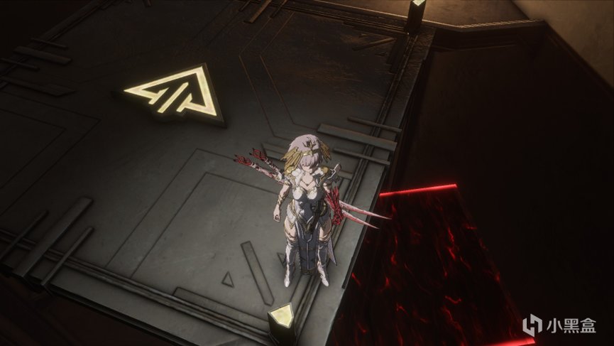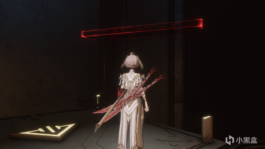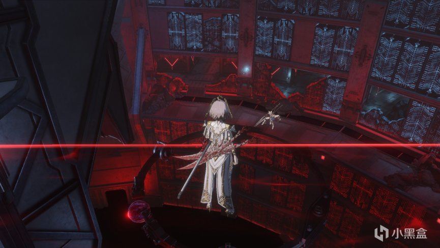 從“深淵靈龕”的第一個晶枝“沉眠陣列”(第4層)出發,玩家來到一個紅色的透明平臺(見圖2),然後從平臺逐一跳下去。從這裏開始,從玩家小心翼翼的專注於下落開始,紅色透明的平臺給玩家提示了第一個功能,紅色透明平臺是用於從高樓層下落到低樓層的臺階。