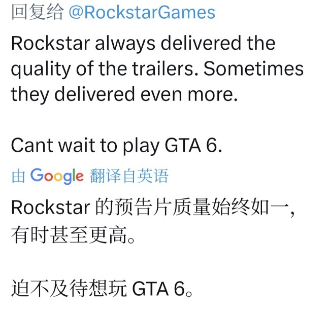 The Verge 報道:Rockstar Games 的官方說明也被 The Verge 收錄:該媒體指出,預告片的每一幀都源自 PlayStation 5 實機錄製,並在預告末尾的文字提示中註明“Captured on PS5” .