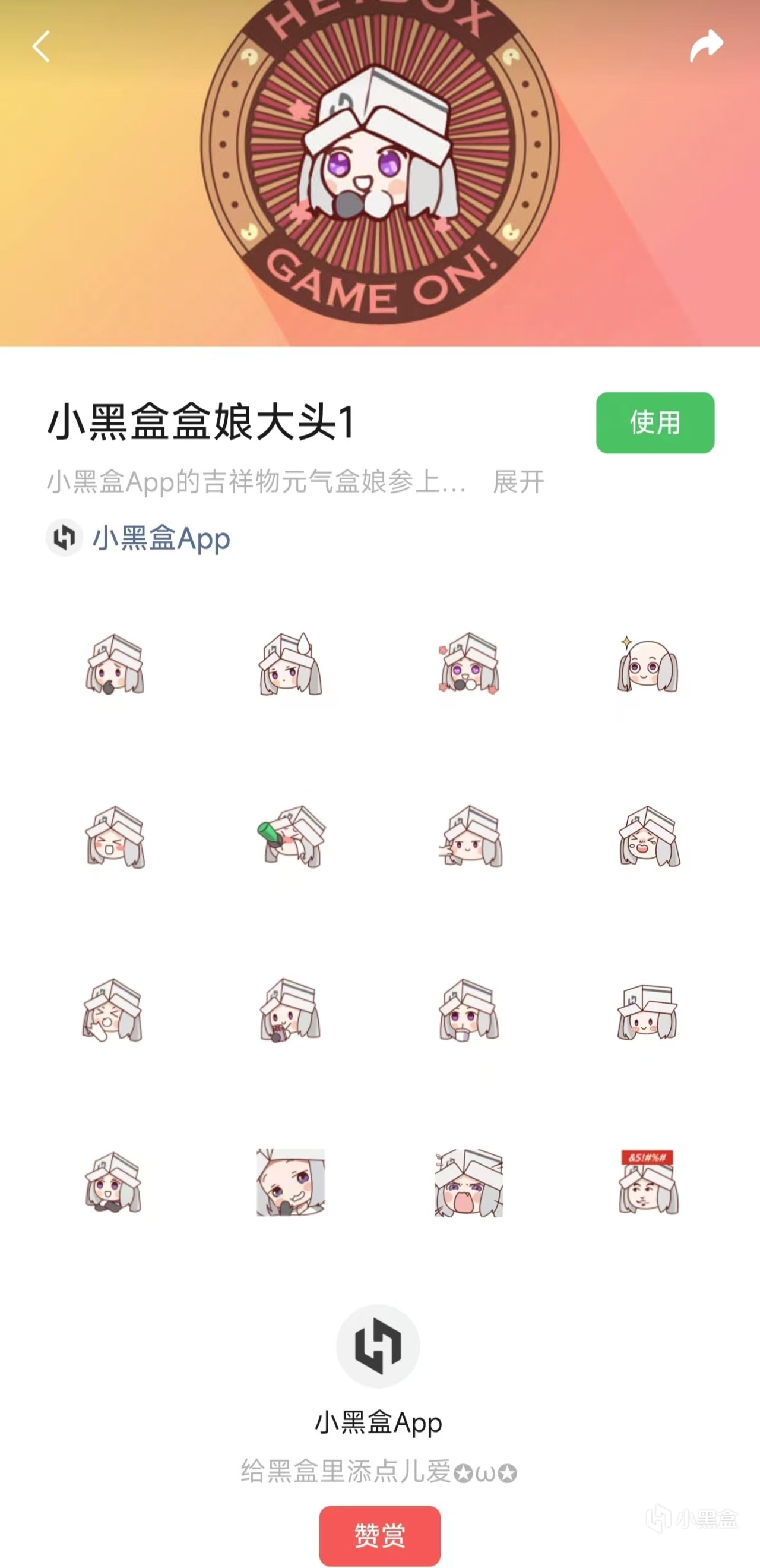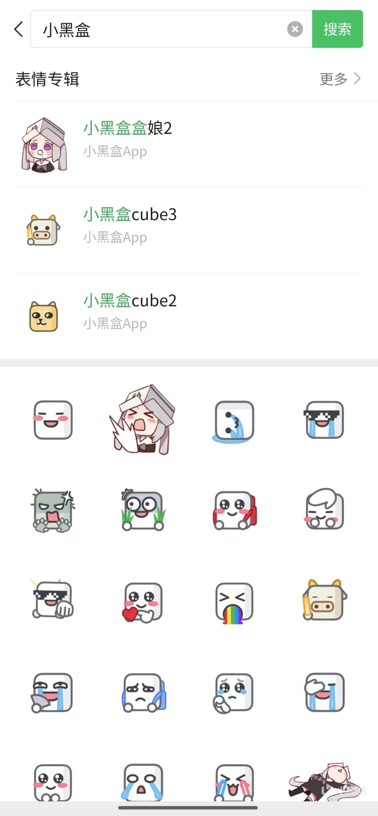 然后再搜索“小黑盒”,就能进入相关页面选取表情来使用啦