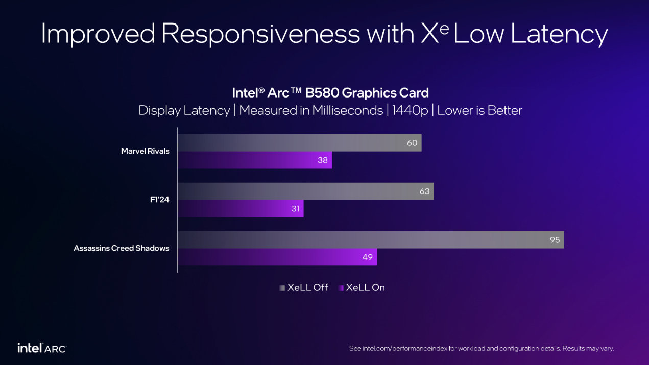 與此同時XeSS 2融入的XeLL技術也讓遊戲操作響應變得更低,在三款快節奏遊戲的測試中,系統延遲平均降低45%,使射擊、轉向等操作實現更高速精準的視覺反饋。