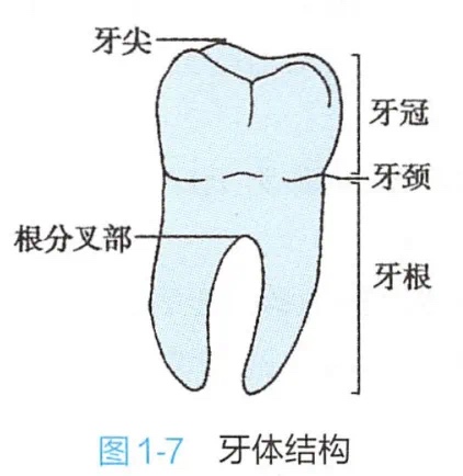 一顆完整的牙齒由牙冠、牙頸、牙根三部分組成,我們平時張開嘴能看到的部分是牙冠,牙根則埋植於牙齦深處的牙槽窩內。