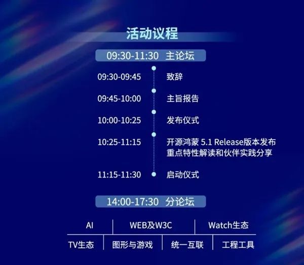 官方介紹,本次大會以開源鴻蒙5.1 Release版本發佈爲契機,特邀開源操作系統技術領袖、前沿實踐專家,面向開發者和生態夥伴展示開源鴻蒙操作系統的技術革新和階段性成果。