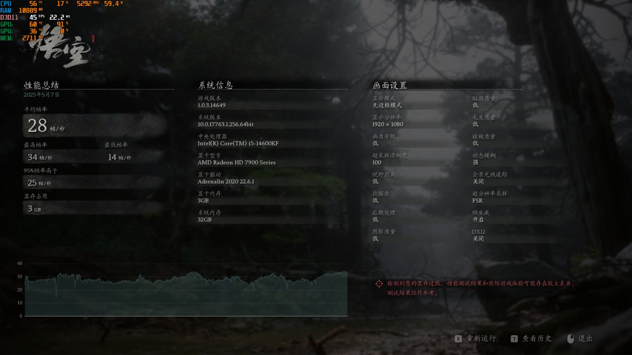 在开启fsr,仅使用一个核芯,全低预设下竟然达到了28帧!电竞帧数!