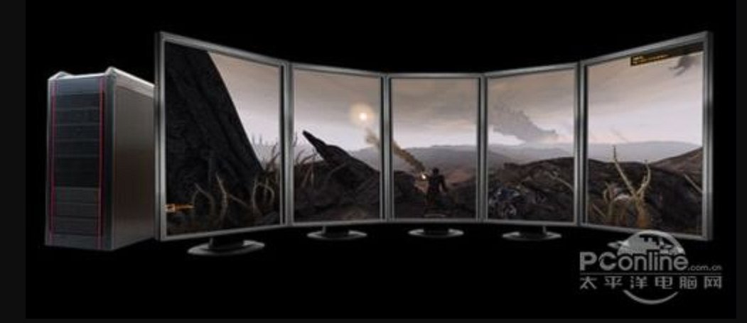 接口方面,一个DVI和多达4个miniDP支持5屏输出,完全满足当年高端玩家接大量屏幕需求(附一张效果图)