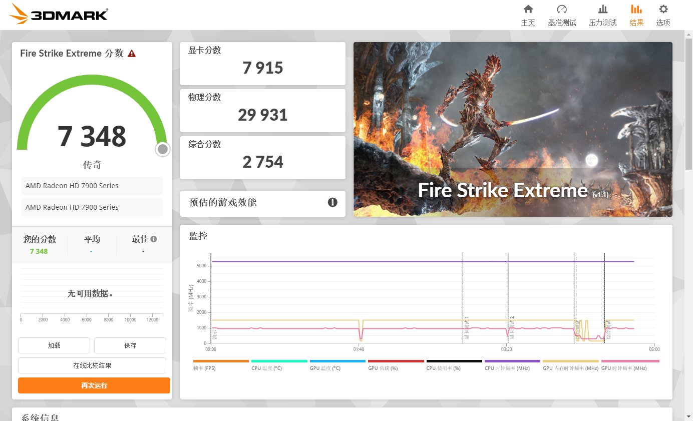 可以看到该显卡跑出了7915的显卡分,超越1660ti(7244)与之对比,竞争对手的GTX690平均跑分仅有(6097)