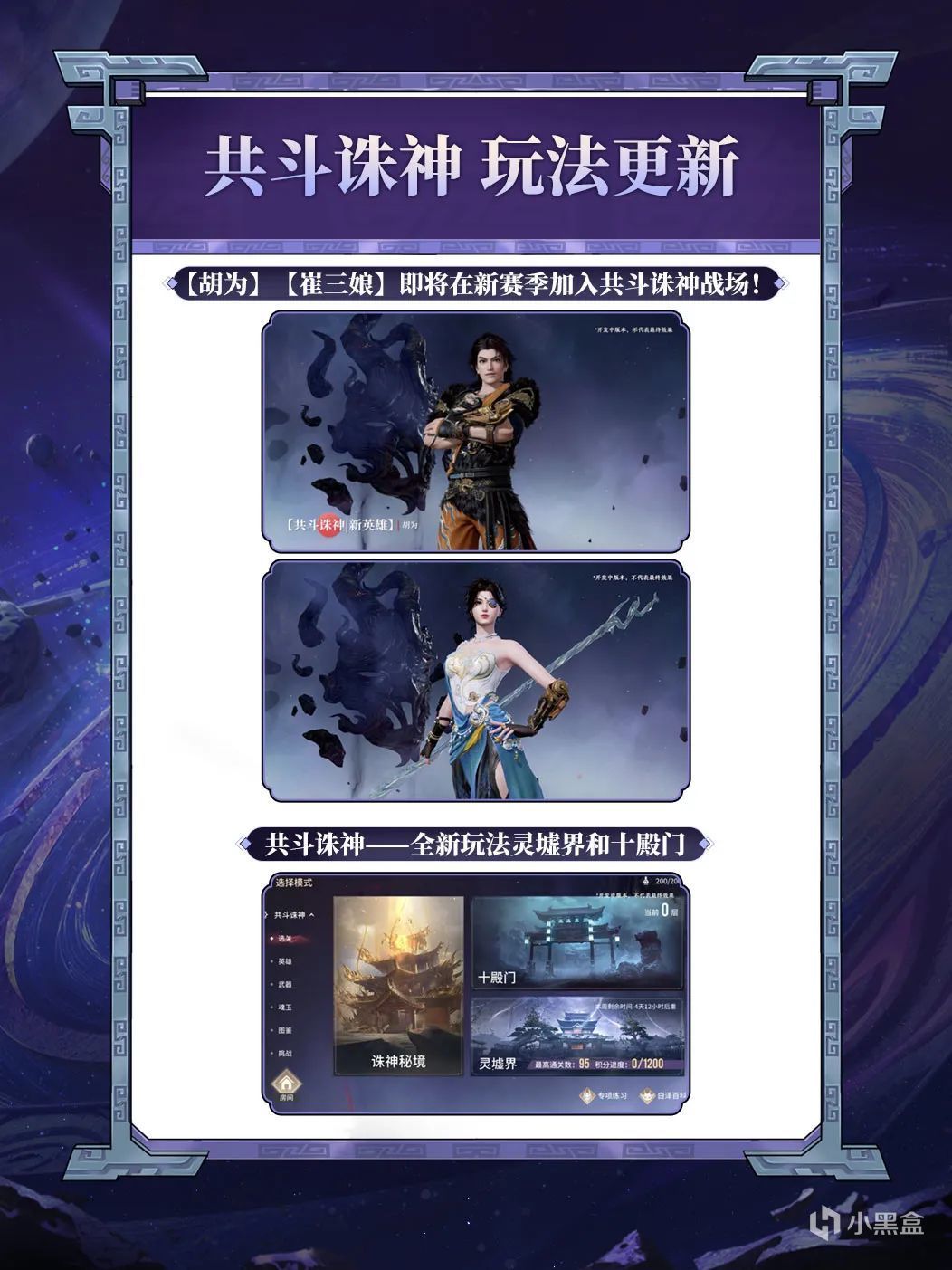 S6賽季pve共鬥誅神玩法也迎來更新,胡爲和崔三娘兩位英雄將在新賽季加入共鬥誅神戰場,帶來誅神模式專屬的技能與奧義效果