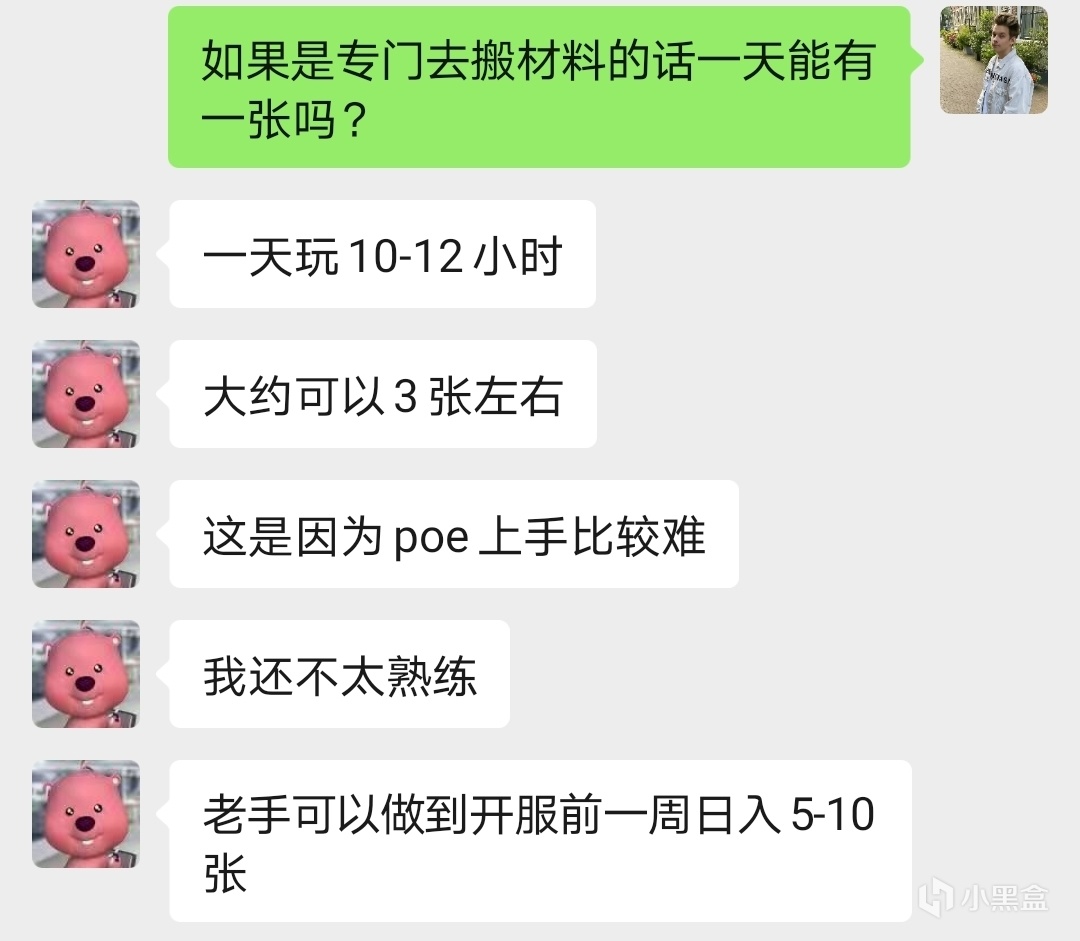 他的描述是,对于普通玩家来说不刻意去搬砖的话,1周的价值大概在1张。