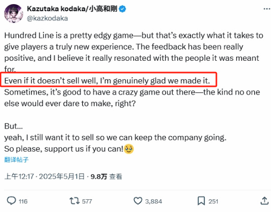 小高本人倒是挺看得開的,表示哪怕最後結果就這樣了,也對做出這款遊戲感到自豪。