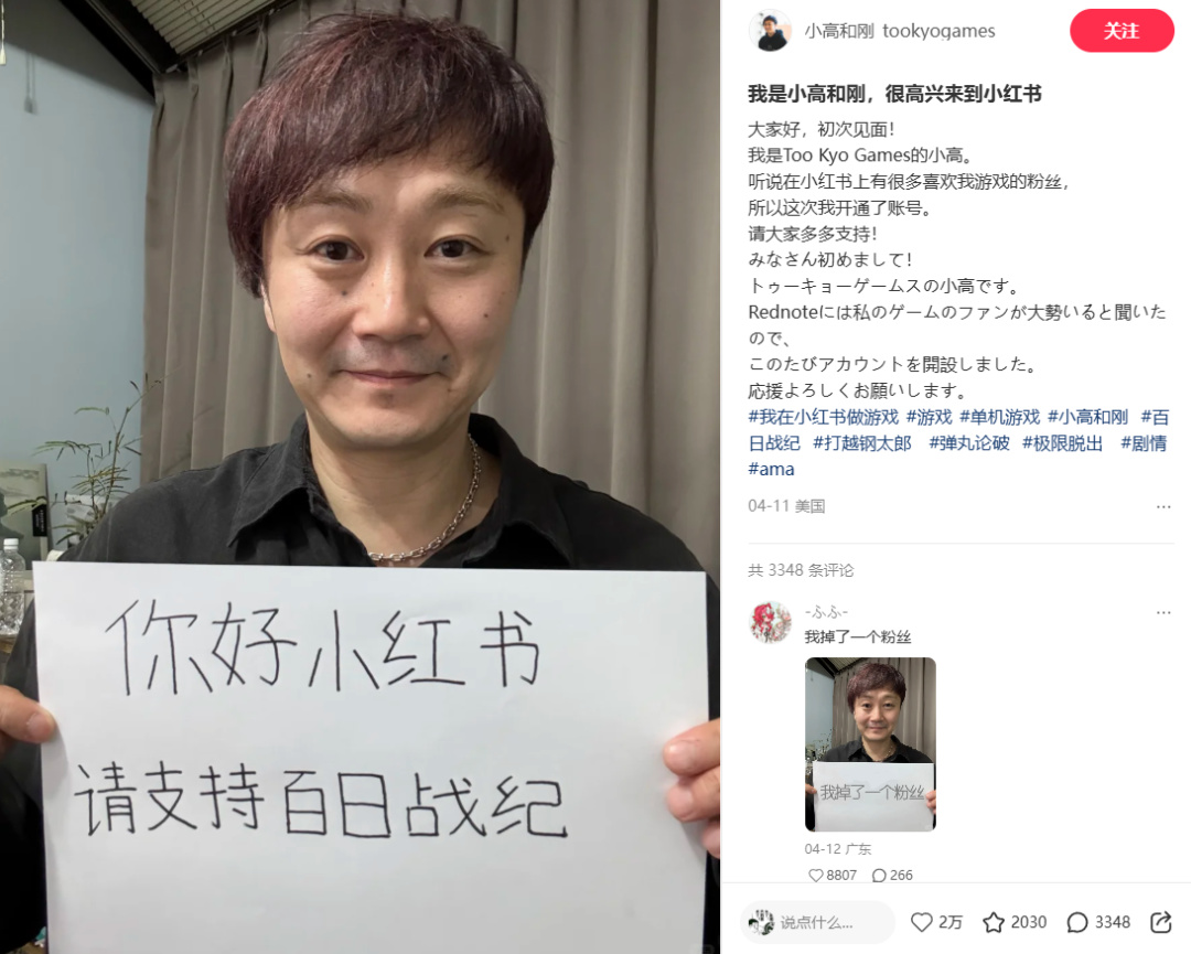 在遊戲發售前夕的4月12日時,小高和剛同步入駐了B站和小紅書兩個平臺。