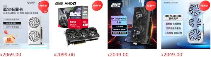 而7650GRE顯卡才兩千出頭,香打遊戲的沒必要多花錢上N卡:
