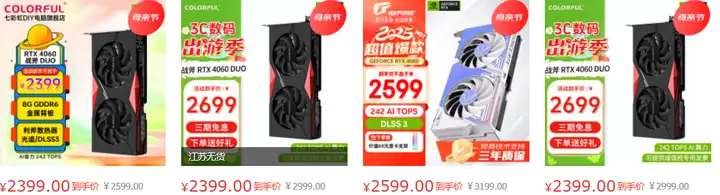 性能相近,但價格相對便宜的多,現在4060單賣均價2400左右: