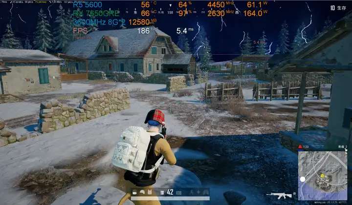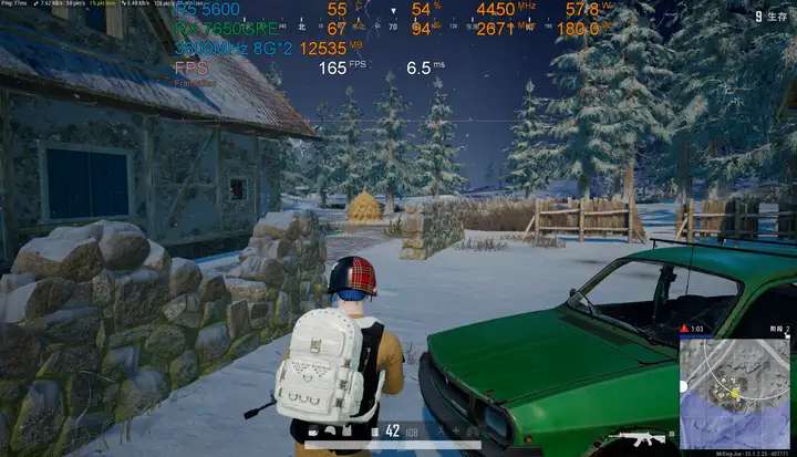 再看看絕地求生,2K分辨率三高畫質(110渲染比例),基本穩在165幀: