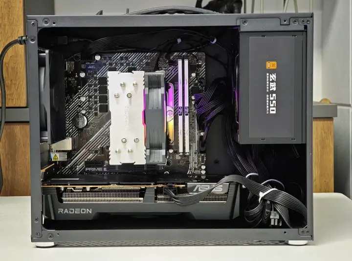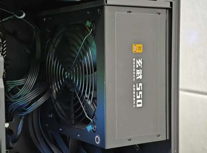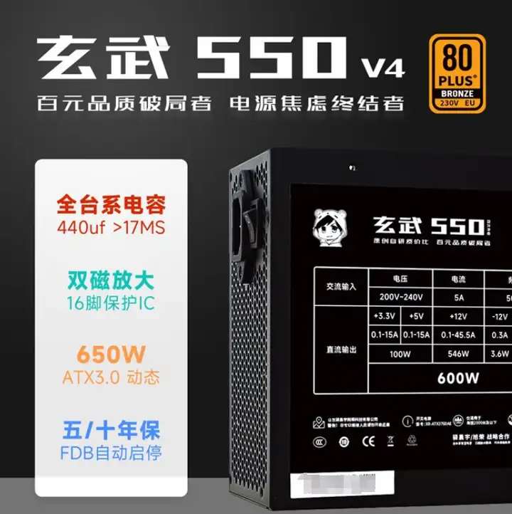 電源用的驛晨宇明星型號——玄武550額定600W,實際帶7800XT都沒壓力的優質電源: