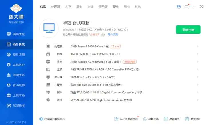 玩遊戲的大頭是顯卡,這個配置上的7650GRE 8G,性能約等於4060 8G: