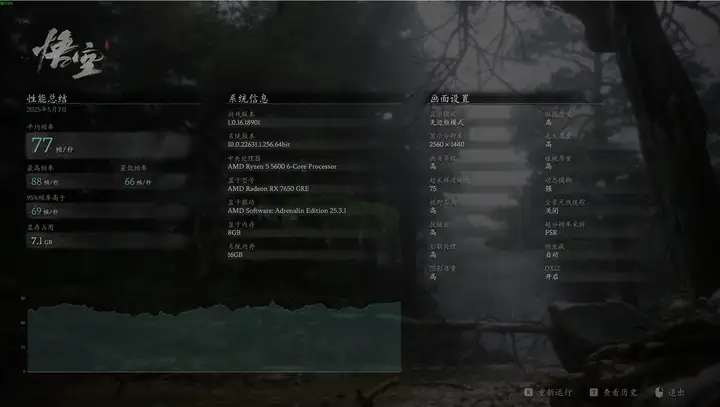 接下來看看2K默認高畫質的黑神話,77幀滿足暢玩標準: