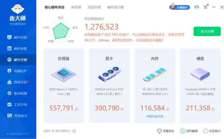 我拿出去年的5600+4060跑分,對比下,可以發現分數接近: