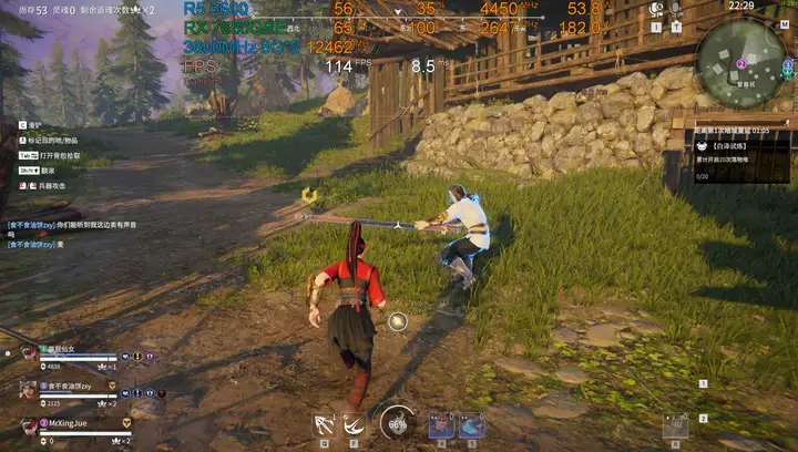 再來看看永劫無間,2K高畫質預設下,三排真人匹配,人多打架時幀數在100-120波動: