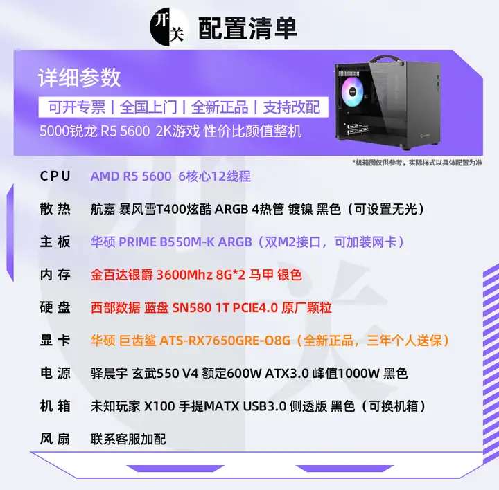 我對它的定位是1080P高畫質、2K中畫質暢玩主流3A,具體配置如下: