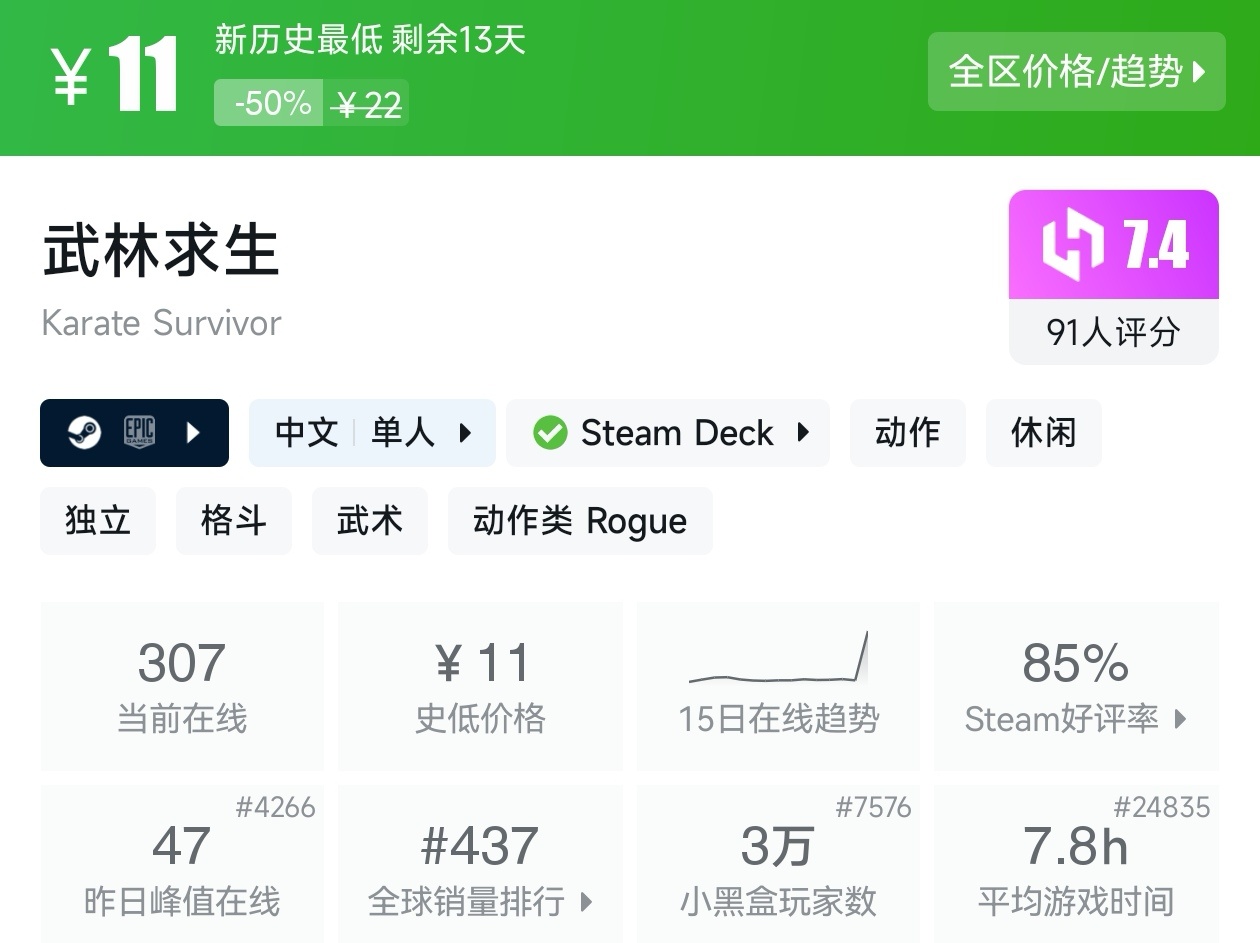 大家好,沒錯,又是我,最近Steam可以說新史低的遊戲是一輪一輪的來,一些新史低遊戲結束後,又有一些新史低遊戲接上來,其實新史低買起來是最安心的,因爲很長一段時間都不用擔心遊戲價格更低被背刺,接下來我將爲各位進行一個彙總,希望我的彙總,能夠幫助各位盒友挑選心儀的遊戲。