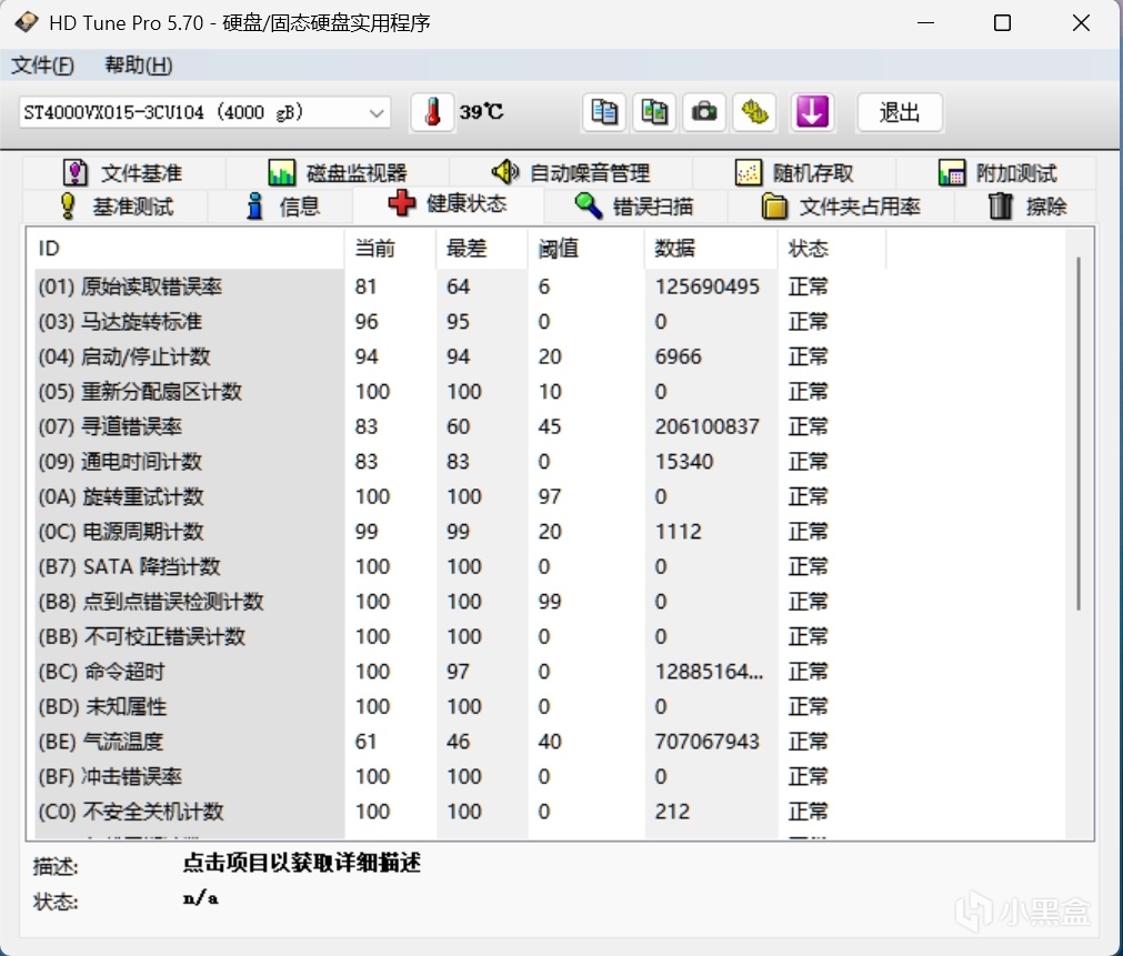 購買機械硬盤後,查看是否有壞道,硬盤健康狀態:
