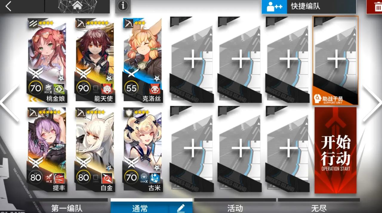 需要在敵方打死我們之前打死敵方。開局桃金娘,棘刺朝下,醫療朝右,能天使朝右,提豐朝右,塞雷亞,掛機。