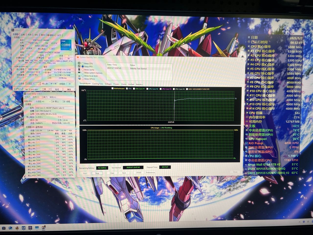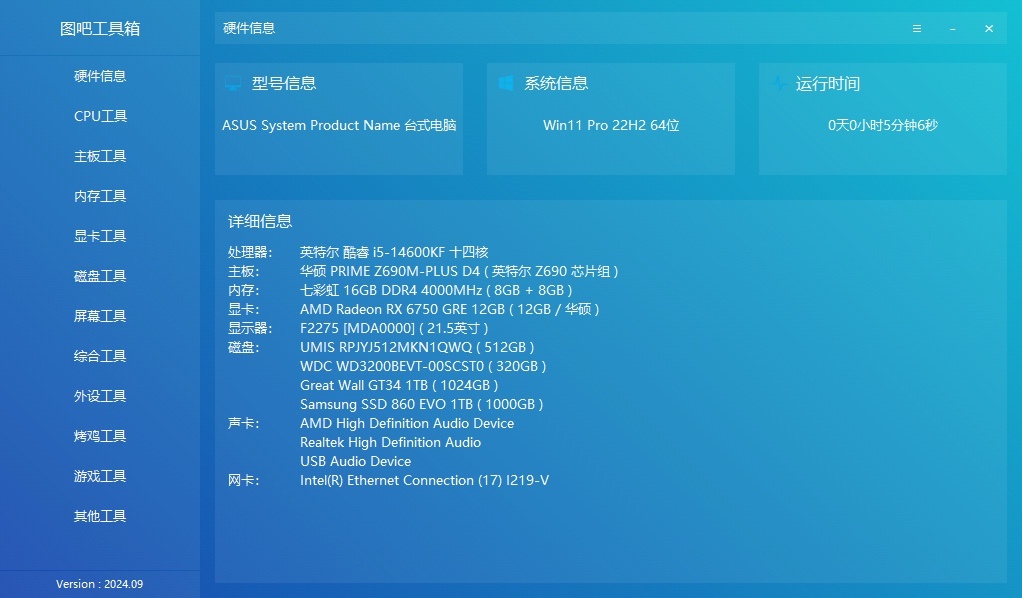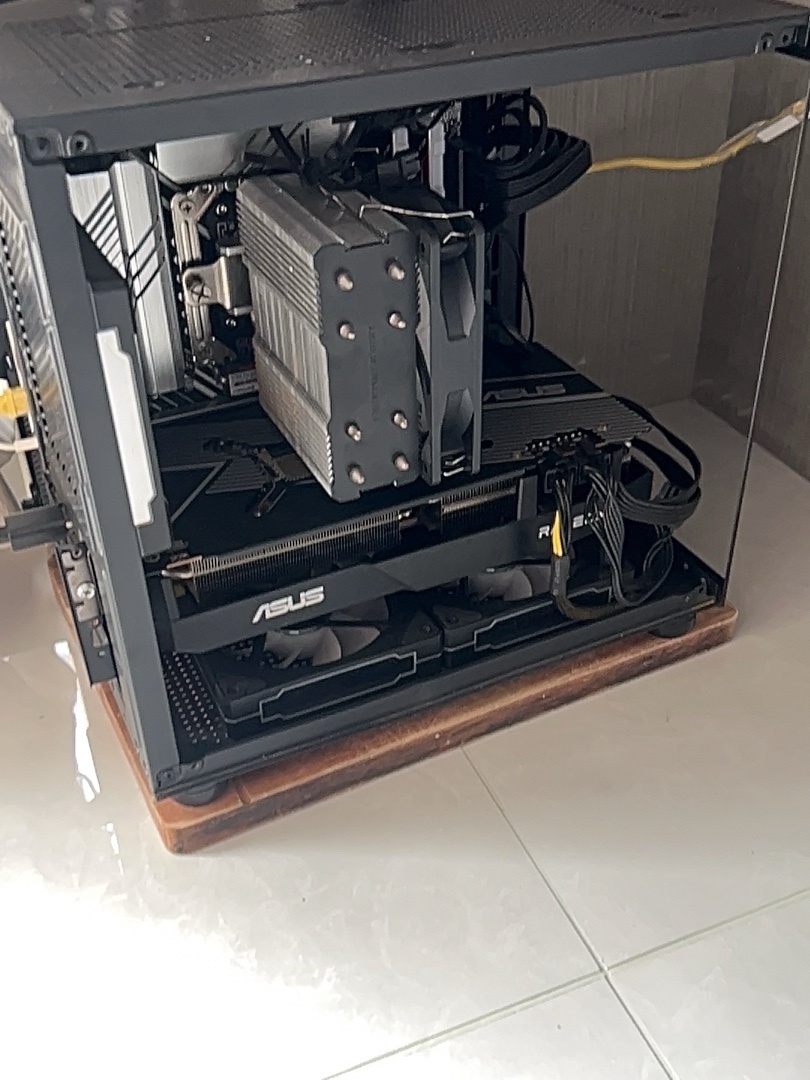 旧电脑是r5 2600的,19年小黄鱼上淘的整套,三千多点,去年黑猴出来,用这电脑打了两个月,玩了四个周目,但是只台中低画质,于是乎想升级个显卡,玩玩高画质,然后闲鱼上看了二手显卡,前后蹲了半个月吧,蹲了张6750gre 12g,1950拿下,测试通过率99.9%。显卡拿回来上机,我去,电源小了,只有450w,而且还只有一根单8pin供电接口,显卡买回来却用不了。心想换电源,那要不要把u也升级到5600,这样一算下了,显卡 电源 cpu,几个大件都得换完了,还不如直接换整机了。于是乎又上闲鱼蹲不带显整机,终于在2月底,蹲到了一个满意的,2280拿下不带显卡的14600kf。就这样,原来的主机完美替换了。4月初,又在京东上国补后899拿下泰坦军团p2710s2k高刷显示器,旧显示器1k 75刷新,主要是太小了,21寸,打游戏看得我好累😩。146拿回来的时候是单塔四铜管的散热器,打游戏放桌面上还好,温度压得住,最高的时候也就75度左右。但是放桌面上,旧电脑就放不下了,于是放到脚下旁边的小格子,这下出问题了,,打游戏不超半小时就会闪退,强行继续打,过会电脑就黑屏关机了,出现了两三次这情况,一开始以为是146爆雷缩缸了,最后一次想把机箱再放回桌面,一摸机箱,我去,都烫手了,这小海景房本就闷罐,再又被塞到那小格子里,散热更不行,积热严重,一会就高温了。于是又想把这小海景房机箱换掉,于是又上小闲鱼了,五一小黄鱼上蹲了个带水冷的大点的侧透机箱,60拿下。拿回来后开始换机箱,从下午两点搞到晚上九点,自己从没装过机,有些地方拆了后不知道怎么还原了,边搜教程边操作,水冷也没装过,也是搜教程。还好换完顺利点亮,因为水冷是二手,担心漏水,就想办法把水冷头会漏水的位置给包住,图中可以看到。水冷散热确实要比之前的单塔四铜管强太多了,单塔四铜管的时候,单烤fpu,不到五分钟就90度了,换了水冷,烤十几分钟都不到80度。现在遗憾的是水冷没顶置装,只通前置装,顶置装不上,内存条卡着了。弄得我又想换机箱了。