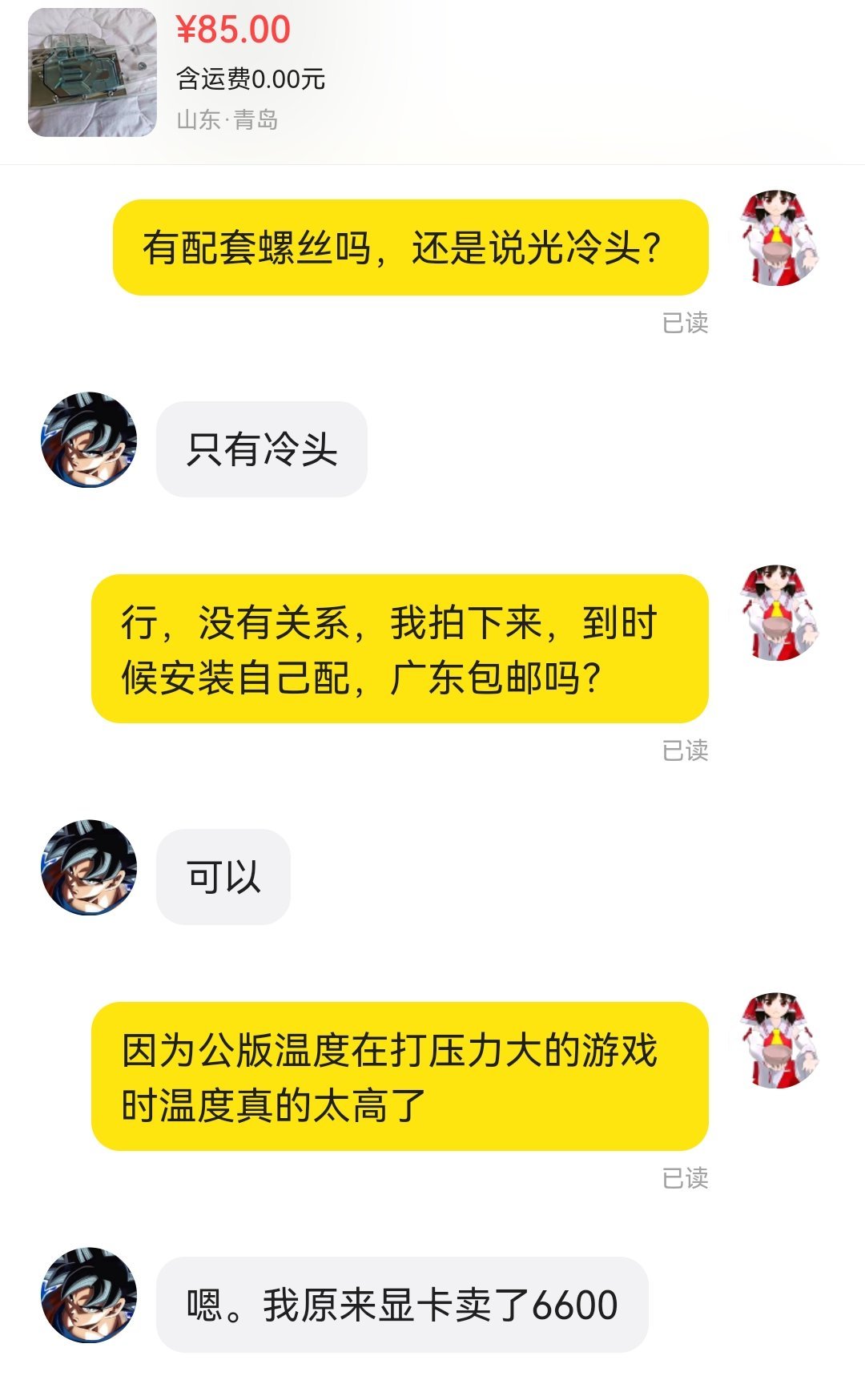 刚开始想的是搞一个120或240一提水改到核心上面,于是就拿楼主曾经捡的一个120水冷改,搞了半天,欸tnnd!固定不上,于是只能先放到一边了,过来不久,lz在刷黄鱼时偶然发现:BY5700xt冷头,100块