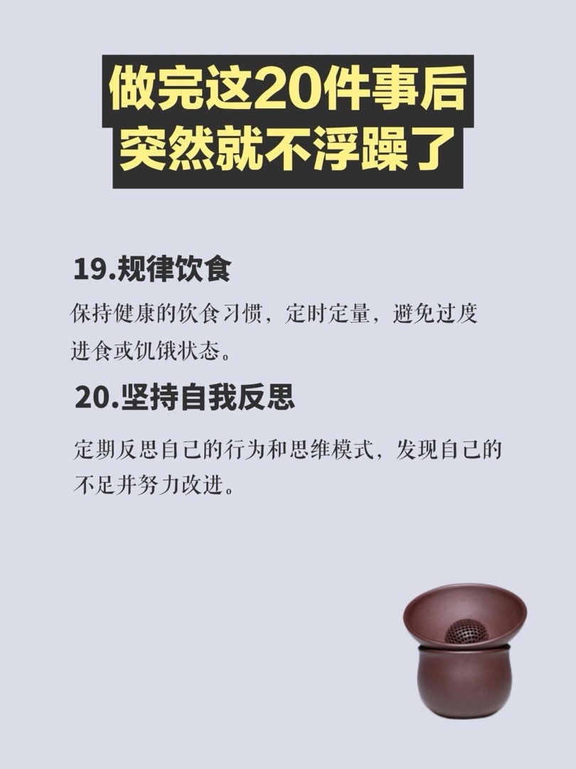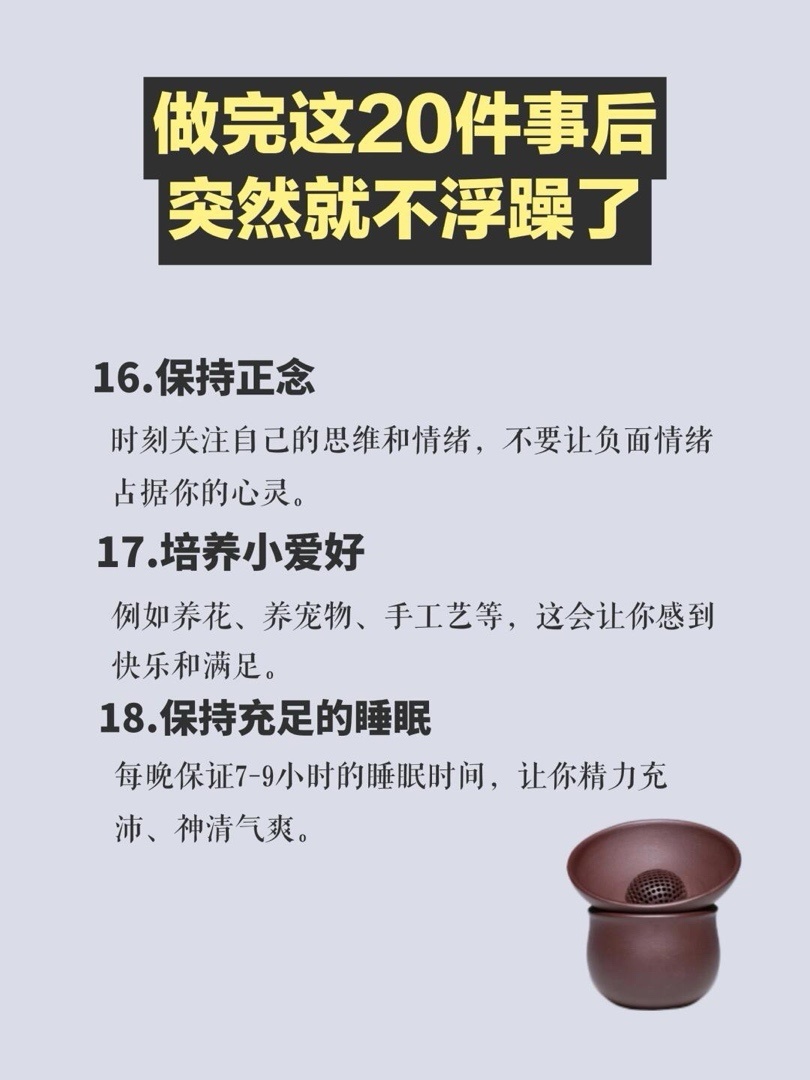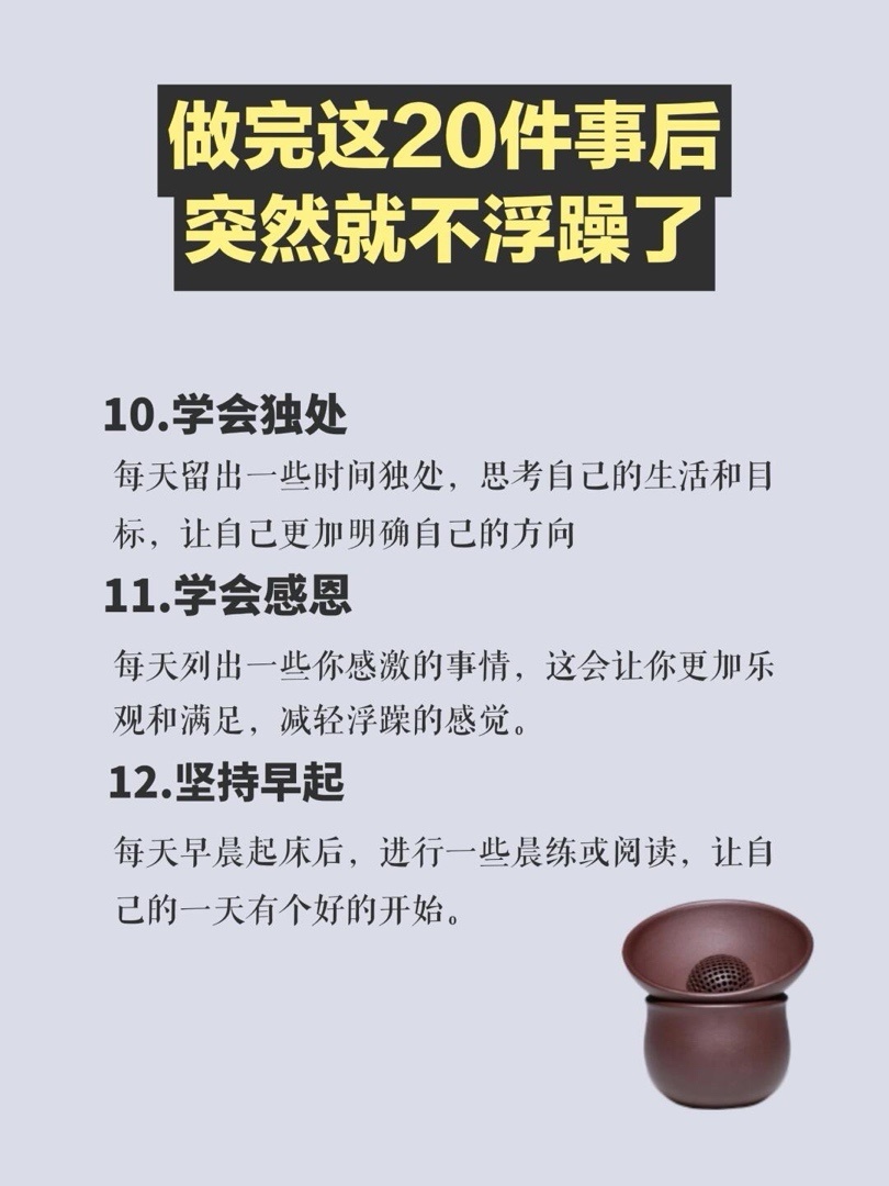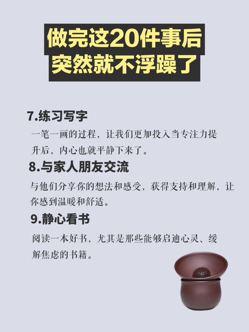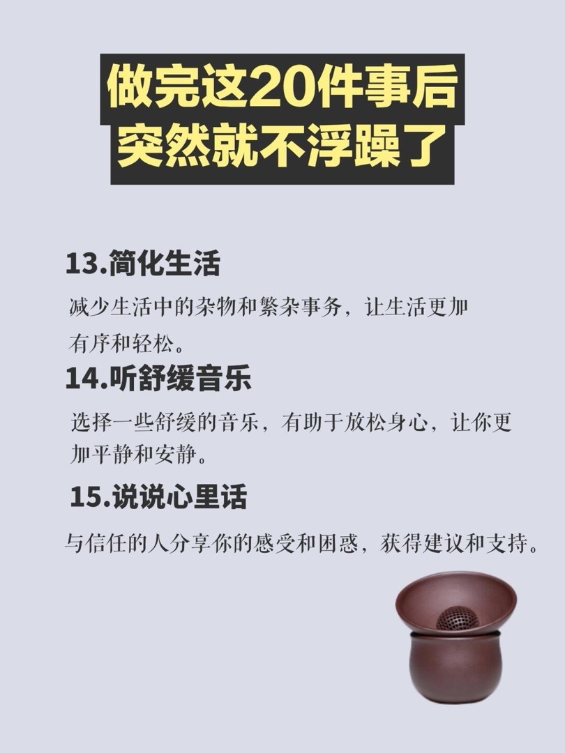 今天,給大家分享20件克服浮躁的事情,希望對你有幫助!❤️