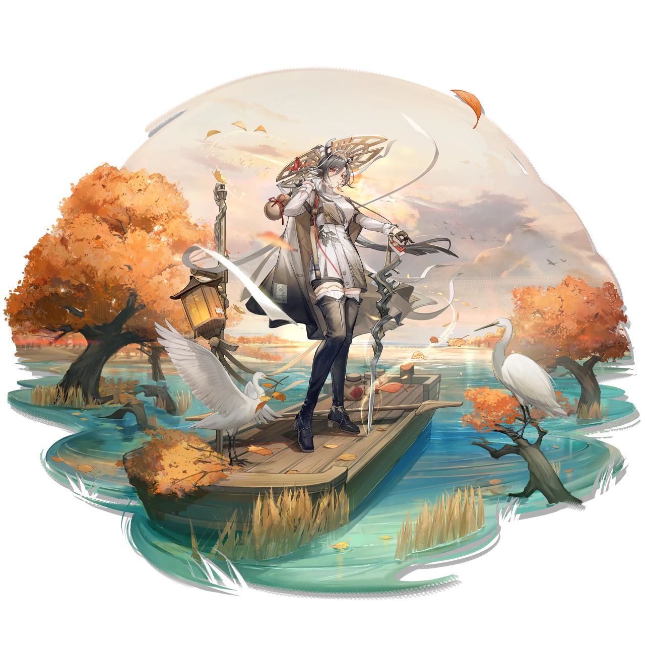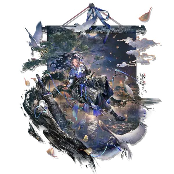仇白身世悽慘,生活的苦難造就了她如同胡楊木一般堅韌的性格,在大漠戈壁間屹立不倒。皮膚還原了曲中秋日場景,通過落於水面的紅楓葉、漂泊於溪流上的一葉輕舟,描繪出一位女俠頭戴斗笠、遠望山河的英姿。但離人之情,始終是俠客心中的傷痛。