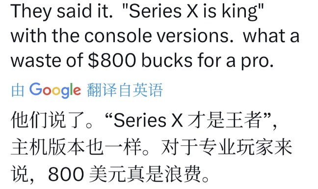 画质差异:整体画面偏“柔和”,对比度与细节略低于 Series X。