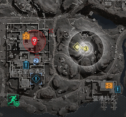第二个在大变电站中心位置,从拉闸点的高台可以刚好瞄到站着掏鳄鱼窝的头。但是如果移动一点就不好瞄了建议趴下捡,不过大变电站二楼还是能完全瞄到这个位置的。