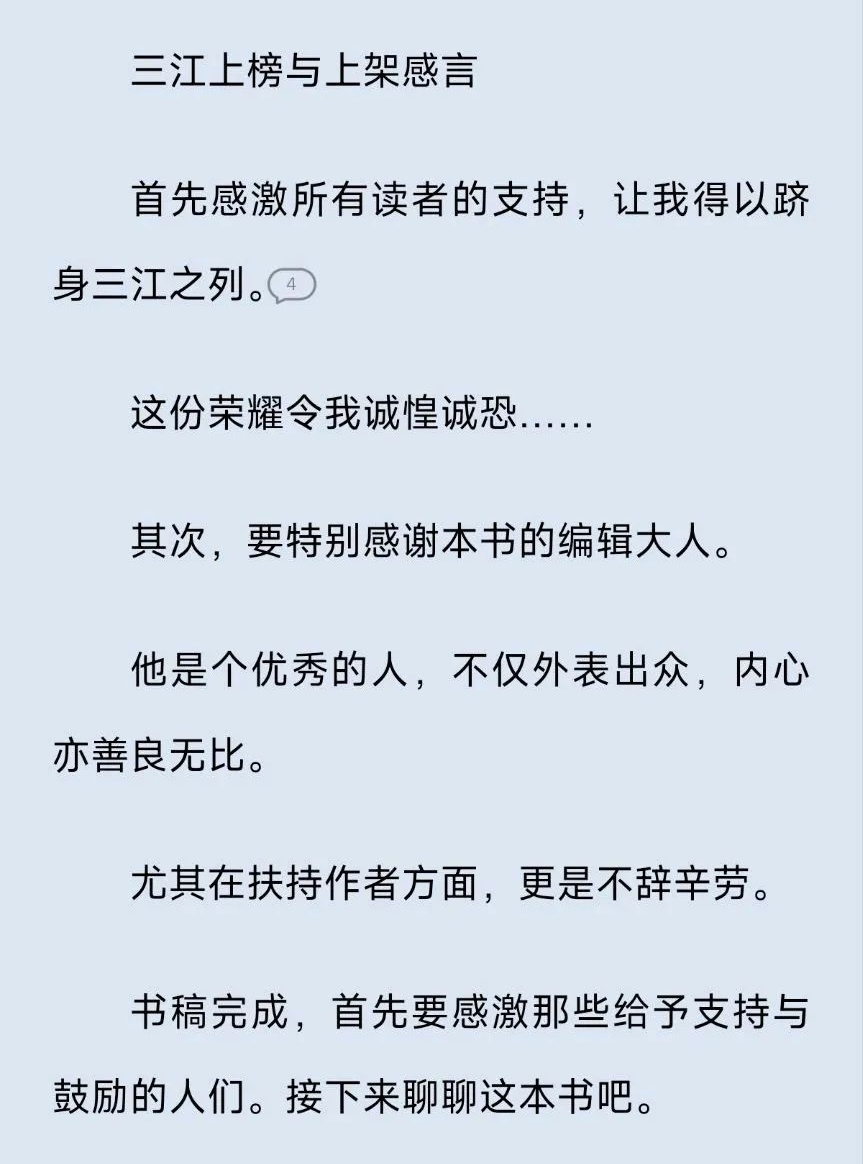 你们对比一下就知道了吧,这个人可能就是用AI 同义词替换把小说直接搬过来的,而且一点还不用心,把人家的三江上架感言都能搬过来(有的人可能不知道,三江榜是起点专属的一个新书榜)。不过截止到我发文章的时候这个小说好像已经下架了。