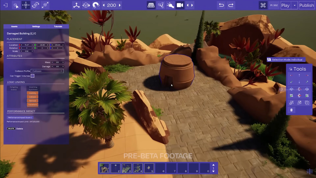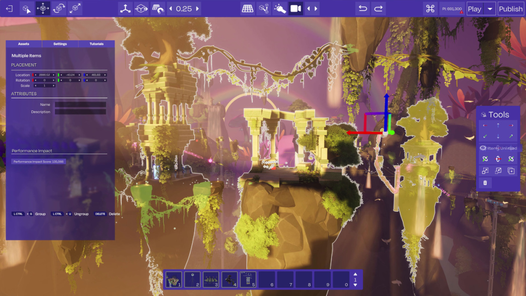 不过,《Everywhere》更为核心也更加重量级的玩法,则是其玩家创作工具“ARCADIA”。它的实际观感比较像“Roblox”这种内容创作平台,玩家可以在其中创建、编写基本的玩法与任务脚本,设计自己“游戏”的地图。与此同时,官方还为这套系统配备了名为“Stamp”的基本素材库,玩家可以借用这个素材库初步创作出自己的可游玩关卡。