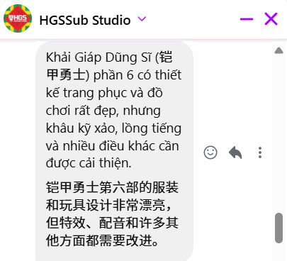這段對白可以認爲是互相誇讚的公式化社交禮儀,不過越南確實存在着一小批忠實的《鎧甲勇士》擁躉。比如臉書上一個名爲HGSSub Studio的賬號,在過去的10年裏接連不斷地爲越南人民分享《鎧甲勇士》的各種情報。
