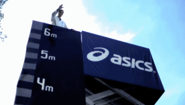 我翻阅了一下资料,发现早在上个世纪 80 年代ASICS亚瑟士就靠硬科技狠狠出圈。首发于 1986 年的 GEL 缓震胶,能将垂直的冲击力道向四周分散,把一枚生鸡蛋从 6 米高度自由落体到胶上,生鸡蛋甚至不会破。