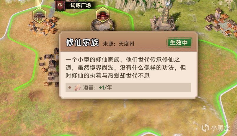 比如一个拥有“修仙家族”的地块可以提供高贵的每年道基+1,那它的价值就会远大于一般地块(没错,游戏也存在一个附属建筑都没的地块,还不少)。