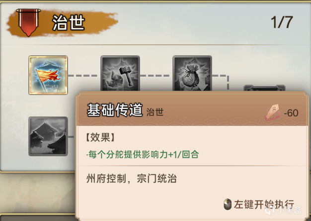 但每一块领地每回合还需要【影响力】来维护——所以如果你是一个【暴铺】爱好者,那么建议必须选择可以持续提供【影响力】的【道统】技能树。