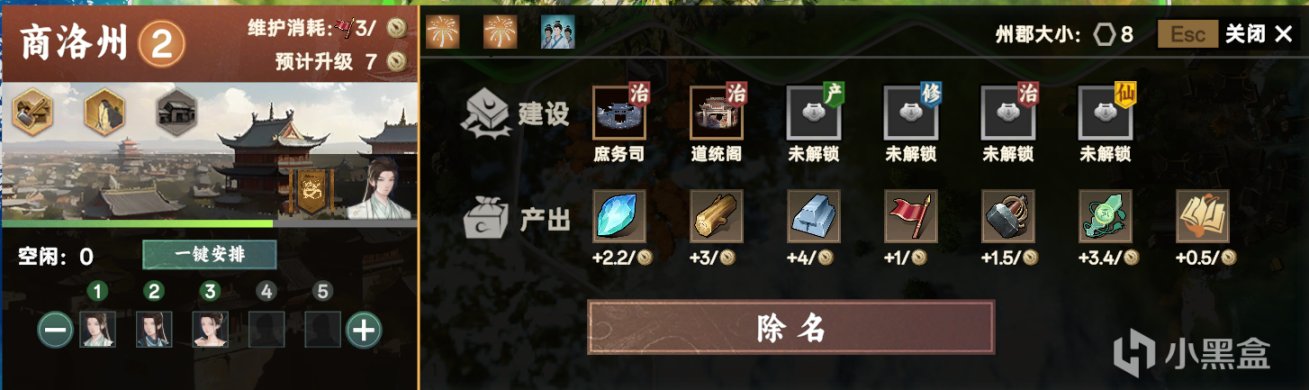 买地完成之后,各个州是自己涨自己的地盘(随机的,不可选),速度取决于州自己的【发展速度】,但是你可以安排弟子前往坐镇给予BUFF,这也就涉及到本作和《文明》最大的差别,那就是——