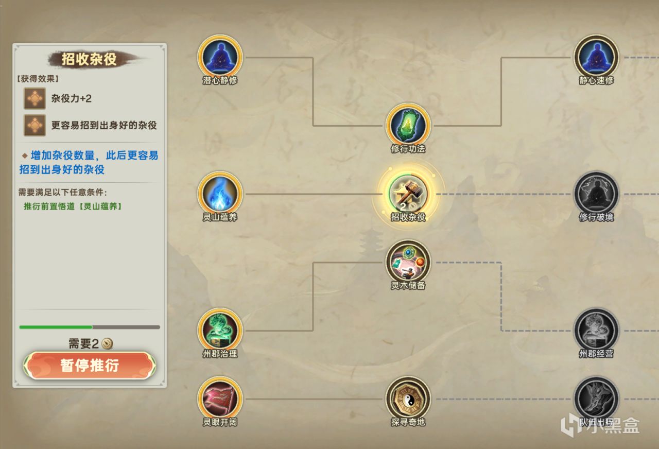 这其中的问题大概在于——资源之间的转化,即游戏的悟道与道基,作为同样的全局BUFF“科技”类资源,它们并不存在内在的转化关系,游戏还做了很多相对“离散”的系统,比如凝聚力自称一个系统,它只有单出口“门派声望”;一般来说作为“通用转换器”的货币也就是灵石,只能便利的转化为药草或者灵晶这样的有形材料。