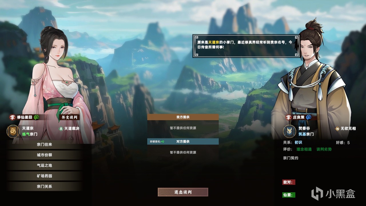 因为本作不存在外交胜利,也不存在加入其他宗门作为附庸的可能性,让这个系统“现阶段”的意义存疑,不过游戏还处于EA状态,后续应该会有围绕它的系统展开。