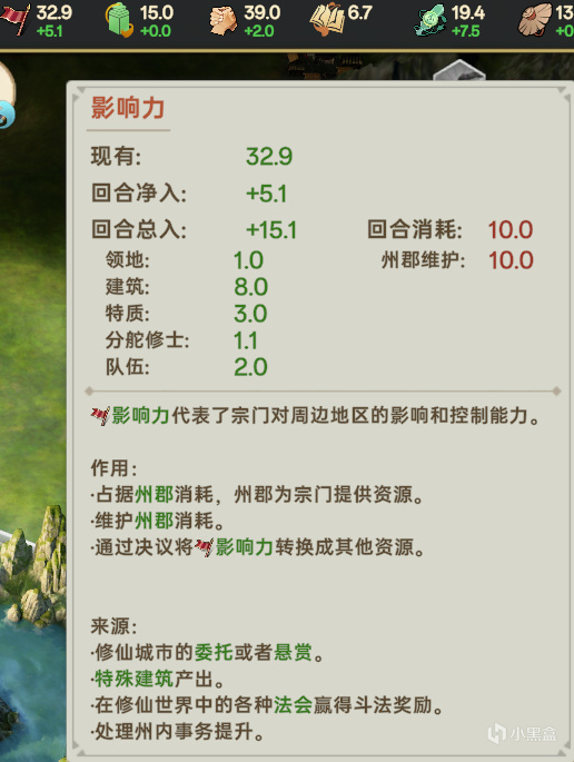 这其中和《文明》差别最大的部分在于【扩地方式】:《宗门志》志是用【影响力】直接“买地”——如果地盘上游散修或者妖物就需要先打一架。