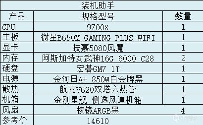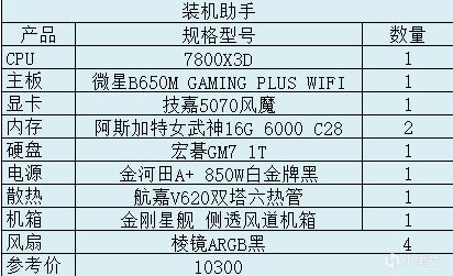 這裏是我認爲比較有性價比的配件。如果有你們覺得更好的配件可以更換可以在評論區回覆一下讓更多人看到,如有搭配不合理的地方歡迎指出。